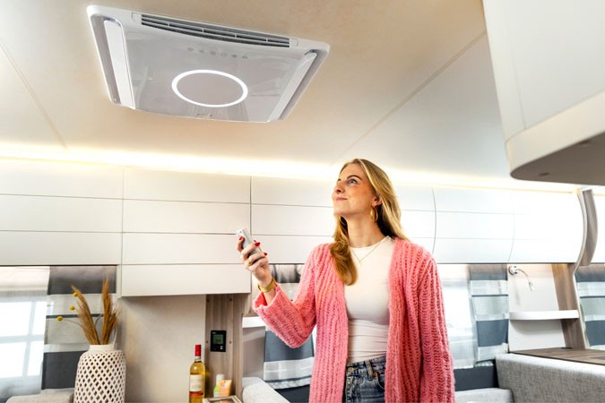 Wat is vooral fijn aan deze airco? Dat je hem eenvoudig kunt bedienen met de afstandsbediening of bijhorende app. Schakel tussen verschillende standen voor een optimaal binnenklimaat. Ook fijn: de GREE Shark IV staat bekend om zijn stille werking en robuuste bouwkwaliteit. Dankzij het gestroomlijnde ontwerp blijft de luchtweerstand minimaal en past de unit op de meeste standaard dakopeningen van campers en caravans. De duurzame invertertechniek verhoogt niet alleen de prestaties, maar ook de levensduur van de airco, waardoor je jarenlang kunt vertrouwen op een stabiel en comfortabel klimaat, waar je reis ook naartoe gaat.